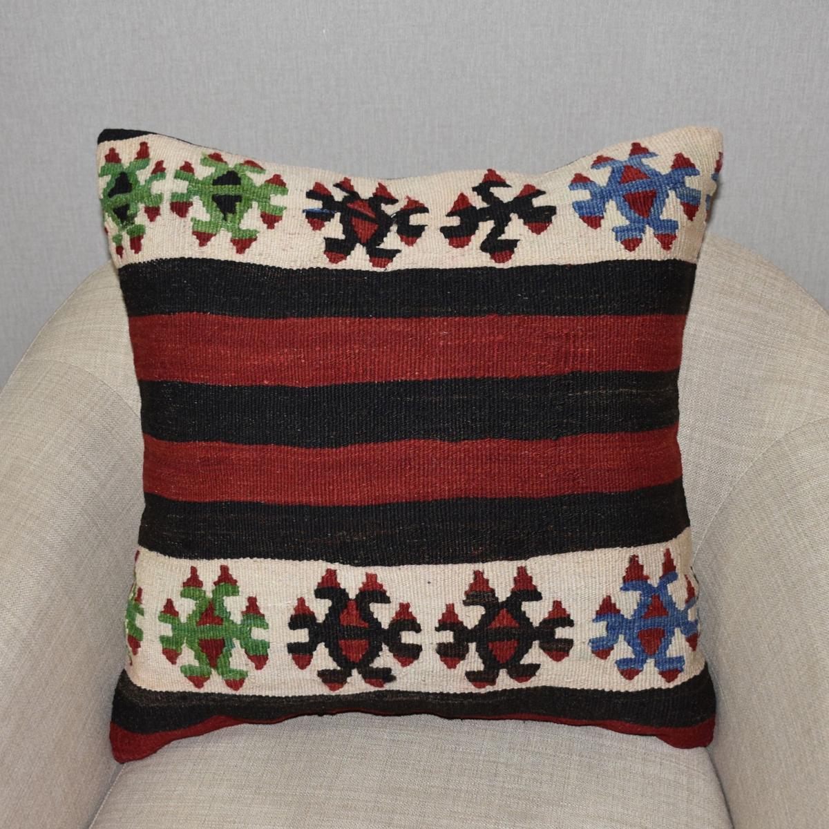 Coussin composé de fragment de tissage d'un tapis kilim antique d'Anatolie, une pièce unique en son genre.