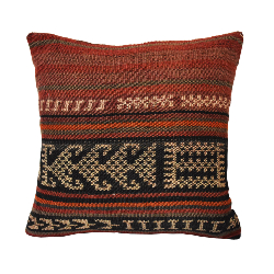 Cette housse de coussin nomade est tissée à la main selon la tradition bédouine Syrienne en poil de chèvre et de dromadaire et teintée de couleurs naturelles. Le tissage est simple sous forme de rayures alternants le blanc cassé , le noir , et le marron. Des couleurs qui s'inspirent du desert Syrien. La petite bande en couleurs pastel vient faire un joli contraste avec les couleurs de base de cette housse plutôt sobre.