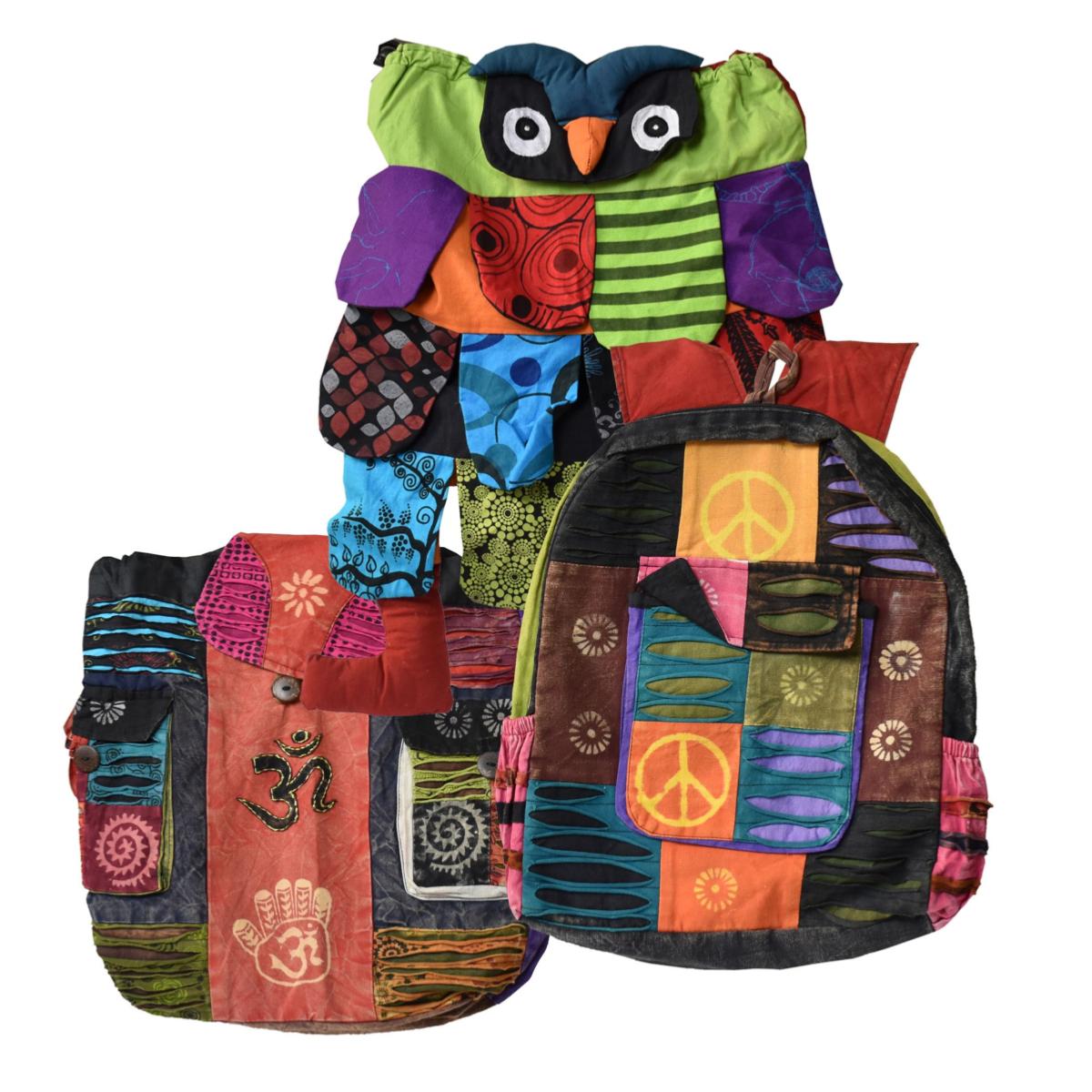 Gais et Colorés, en patchwork de tissus 100 % coton, avec bretelles réglables dans le dos, entierement doublés.