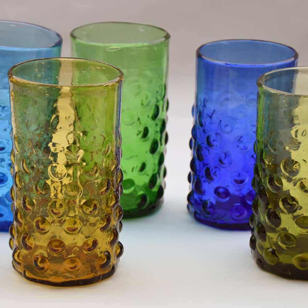 Découvrez notre collection de verre soufflé artisanal Syrien à bulles, fabriqué selon la tradition artisanale locale à partir de débris de verre recyclés , fondus et réutilisés. Ce modèle sort du commun avec les petites bulles qui le couvrent, ce détail demande beaucoup de précision. Il existe plusieurs coloris de ce modèle (vert, ambre, bleu marine, turquoise, rouge et transparent) . Vous avez bien sûr la possibilité de faire une commande personnalisée , en optant pour plusieurs couleurs ou modèles . Le choix est vraiment grand*