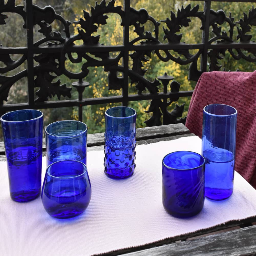 Verre Soufflé Artisanal Syrien Conique Couleur Bleu